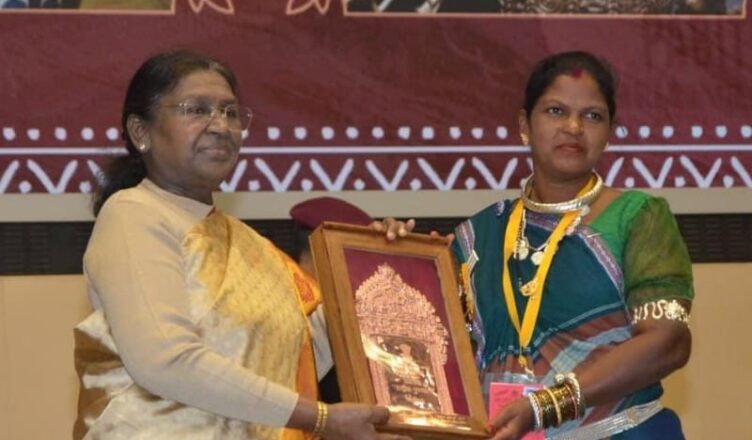 रायपुर, 09 दिसंबर 2025/छत्तीसगढ़ की पारंपरिक धातुकला को राष्ट्रीय स्तर पर नई पहचान दिलाने वाली सारंगढ़-बिलाईगढ़ जिले की प्रसिद्ध ढोकरा–बेलमेटल शिल्पकार श्रीमती हीराबाई झरेका बघेल को आज नई दिल्ली स्थित विज्ञान भवन में आयोजित समारोह में राष्ट्रपति श्रीमती द्रौपदी मुर्मु द्वारा राष्ट्रीय हस्तशिल्प पुरस्कार से सम्मानित किया गया। इस गौरवपूर्ण उपलब्धि पर मुख्यमंत्री श्री विष्णु देव साय ने प्रदेशवासियों की ओर से उन्हें बधाई देते हुए कहा कि यह पूरे छत्तीसगढ़ के लिए अत्यंत गर्व का क्षण है।