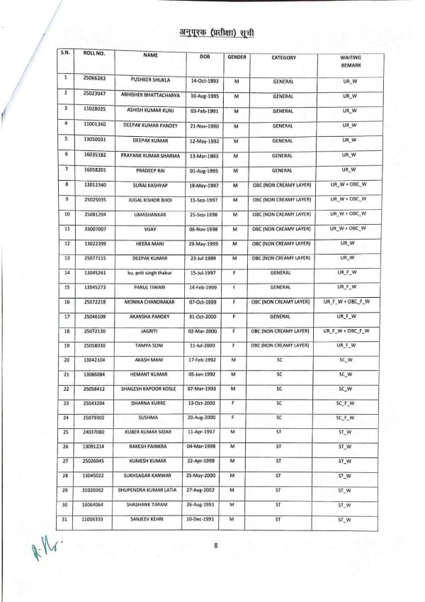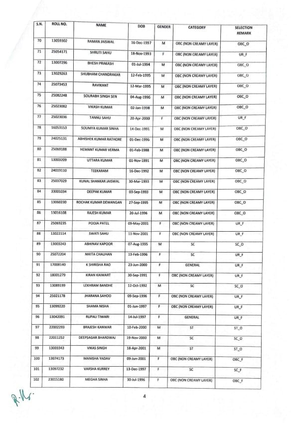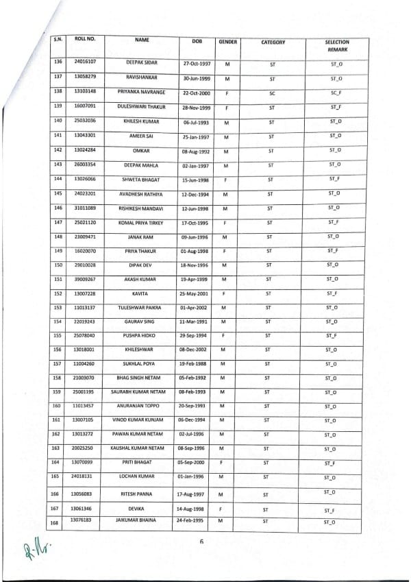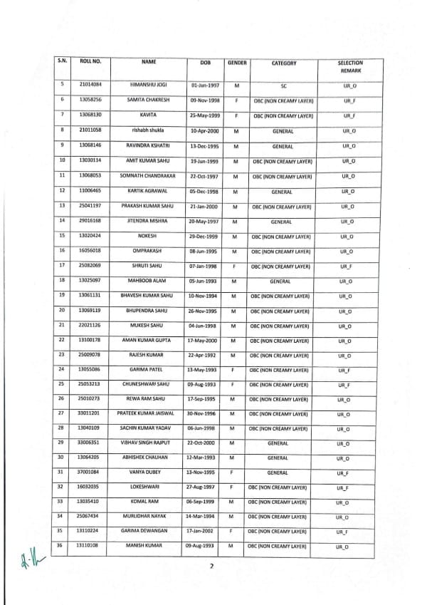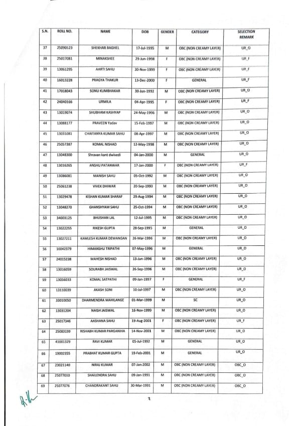 आबकारी आरक्षक पद के कुल 200 पदों के विरूद्ध 200 पदों पर अभ्यर्थियों की उपलब्धता अनुसार चयन सूची तथा 43 अनुपूरक (प्रतीक्षा) सूची जारी गई है।