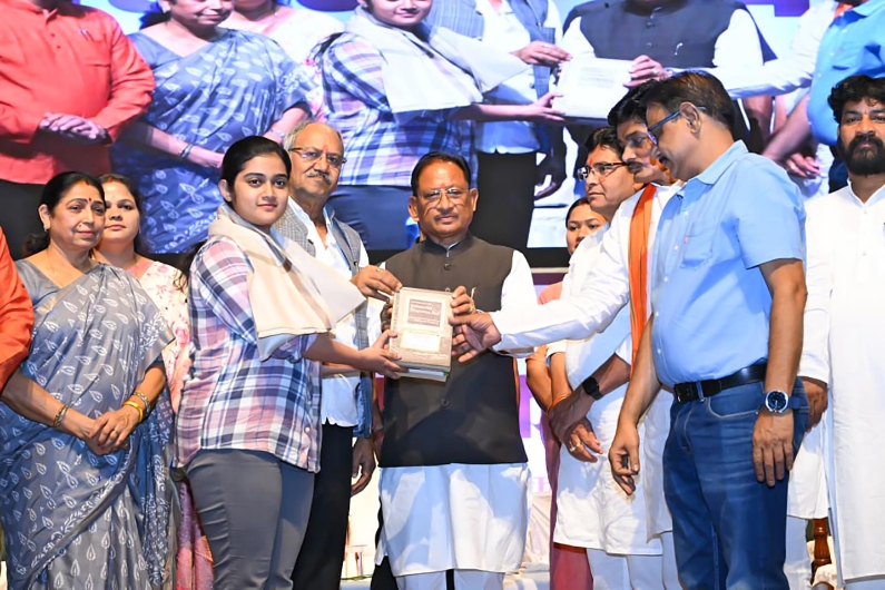 मुख्यमंत्री श्री साय ने जिला प्रशासन रायपुर द्वारा नवजात शिशुओं में जन्मजात हृदय रोगों की पहचान के लिए प्रोजेक्ट धड़कन, देहदान को प्रोत्साहित करने के लिए प्रोजेक्ट दधीचि, किसानों को नवाचार से जोड़ने के लिए प्रोजेक्ट नैनो, प्रोजेक्ट रचना, प्रोजेक्ट स्मृति पुस्तकालय, प्रोजेक्ट पाई-पाई, ग्लोबल गांव, ज्ञान भारतम, प्रोजेक्ट सिग्नल, मेरा गांव मेरी पहचान, प्रोजेक्ट अजा, प्रोजेक्ट बिजनेस दीदी समेत विभिन्न प्रोजेक्ट के स्टालों का अवलोकन किया और हितग्राहियों को प्रशस्ति पत्र एवं राशि का वितरण किया।