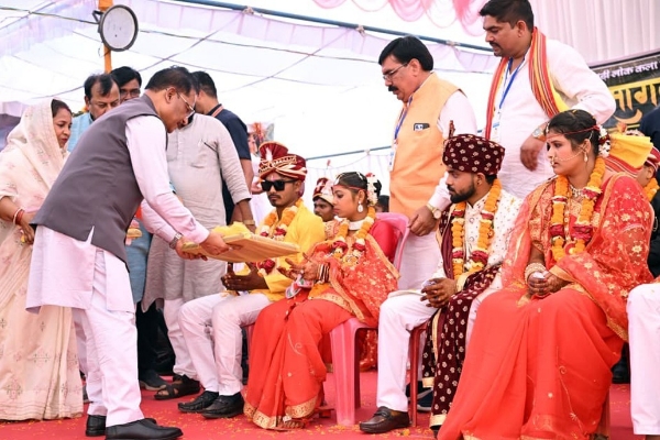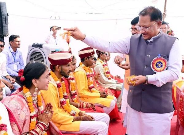 रायपुर 26 अप्रैल 2026/दुर्ग जिले के ग्राम भरर (जामगांव-आर) में आयोजित तहसील स्तरीय विशाल कर्मा महोत्सव एवं सामूहिक आदर्श विवाह कार्यक्रम सामाजिक समरसता और परंपरा का जीवंत उदाहरण बनकर उभरा, जहां मुख्यमंत्री श्री विष्णु देव साय ने सहभागिता करते हुए 13 नवविवाहित जोड़ों को आशीर्वाद दिया और उनके सुखमय दांपत्य जीवन एवं उज्ज्वल भविष्य की कामना की।