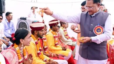 छत्तीसगढ़ में सामूहिक विवाह बना सामाजिक एकता का उत्सव, मुख्यमंत्री ने 13 नवदंपतियों को दिया आशीर्वाद April 26, 2026April 26, 2026Roytars News Comment रायपुर 26 अप्रैल 2026/दुर्ग जिले के ग्राम भरर (जामगांव-आर) में आयोजित तहसील स्तरीय विशाल कर्मा महोत्सव एवं सामूहिक आदर्श विवाह कार्यक्रम सामाजिक समरसता [...]